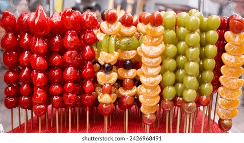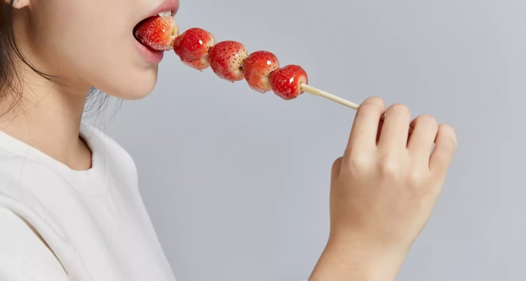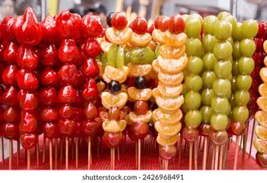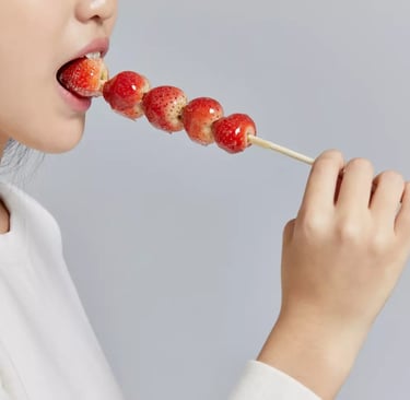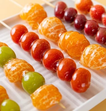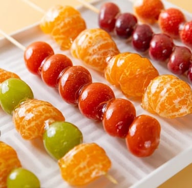 Experience authentic Korean tanghulu, beautifully crafted with fresh fruits and a crisp sugar shell.
