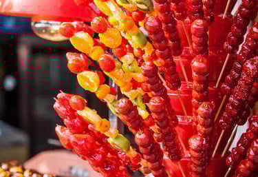 Experience the sweet crunch of our handcrafted candied fruit delights, made fresh just for you.